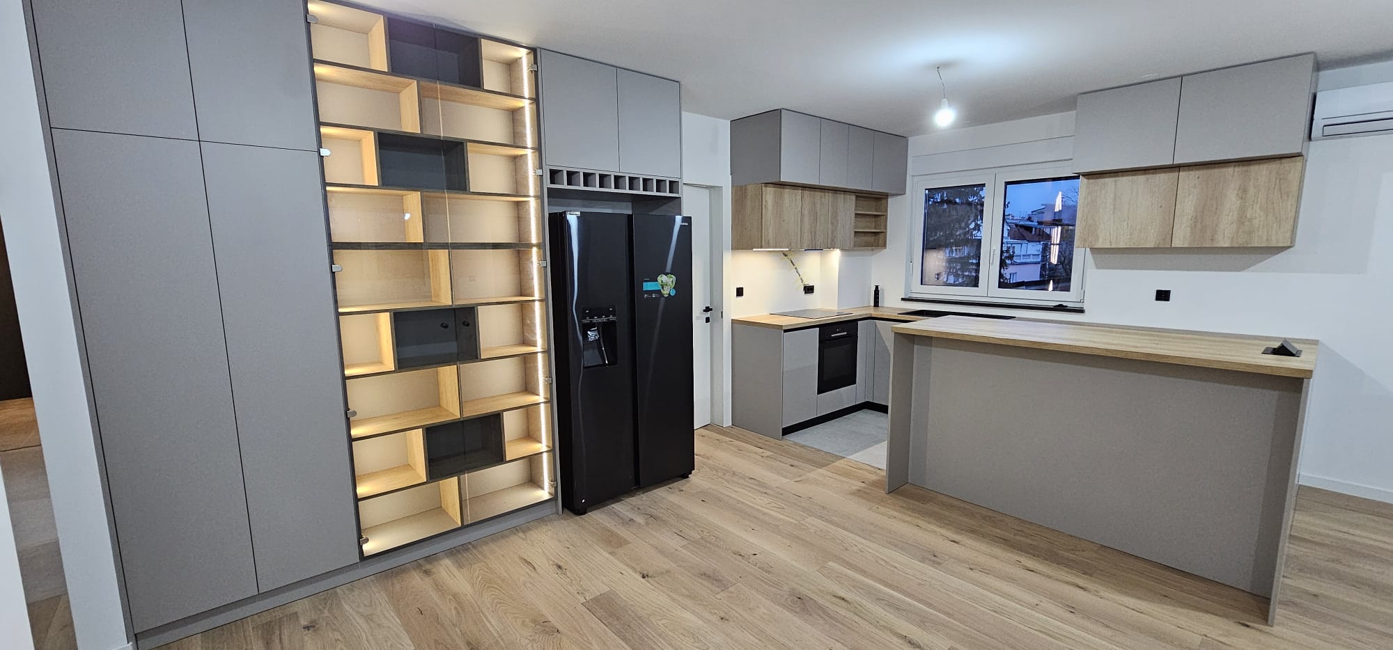 Kuhinja je srce svakog doma. Zato pristupamo svakoj ideji i projektu s posebnom pažnjom – od dizajna i izbora materijala do izrade i montaže. S bogatim iskustvom i pouzdanim partnerima, gradimo kuhinje, ugradben ormare, dnevne sobe i ostali namještaj, koji spaja funkcionalnost, kvalitetu i estetiku.